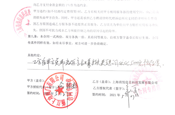 5月27日,商悅傳媒與浙江上功閥門有限公司簽訂營銷型網站建設合同。