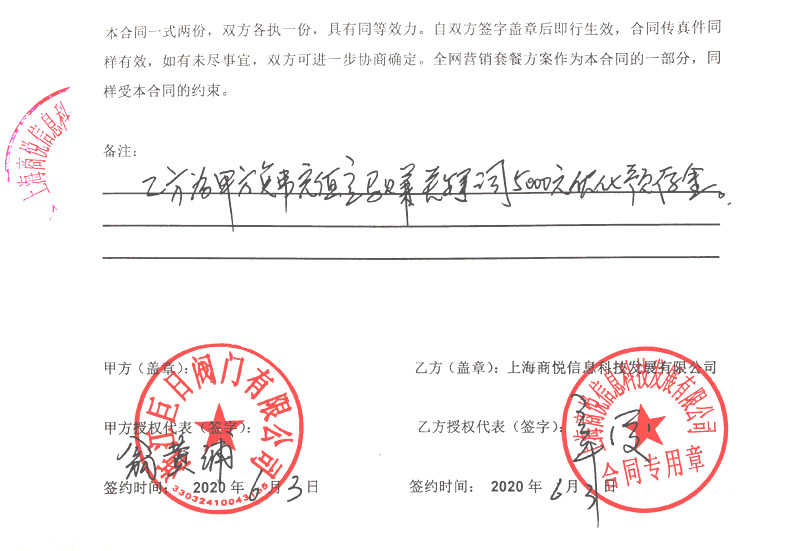 6月3日,商悅傳媒與浙江巨日閥門有限公司簽訂營銷型網站建設合同。