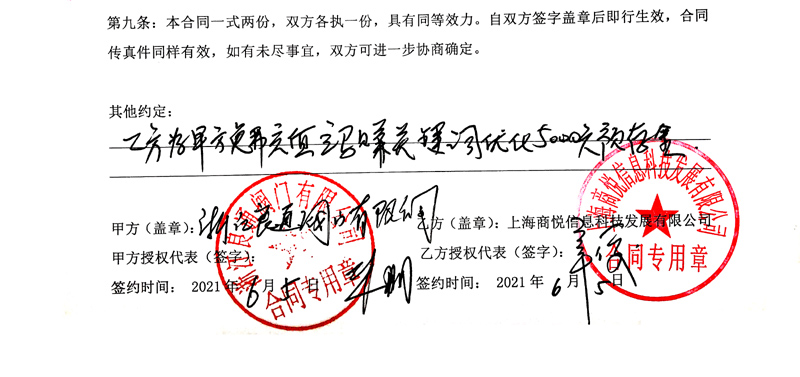 6月5日,商悅傳媒與浙江良通閥門有限公司簽訂營銷型網(wǎng)站建設(shè)合同。