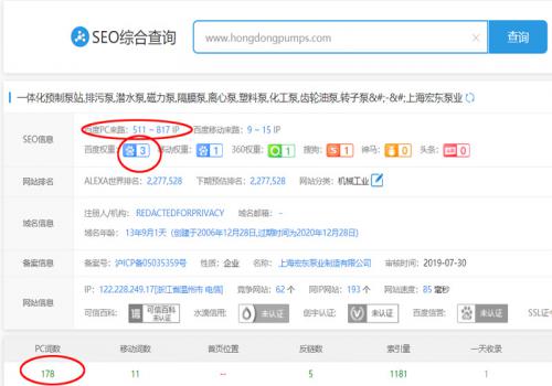 百度PC來路:511 ~ 817 IP 百度移動來路:9 ~ 15 IP;百度權重3;PC詞數178。網頁在百度收錄量為1181個頁面。